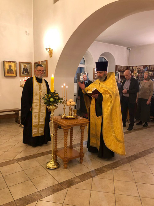 По окончании Божественной литургии был совершен крестный ход вокруг храма, освящено коливо.